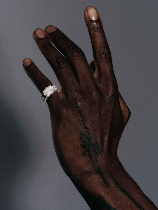 The Rohma Ring – Textured Solid Silver Cuban Chain with Emerald
