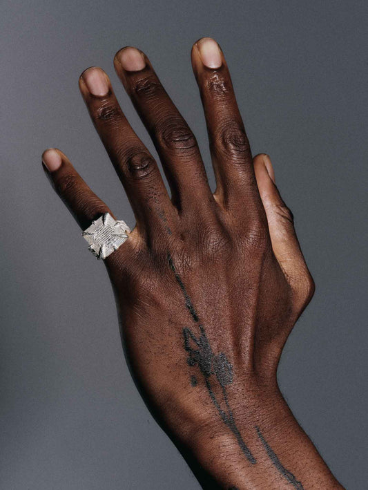 The Phat Loose Link Pinky Ring – Textured Solid Silver Cuban Chain with Princess-Cut Stone