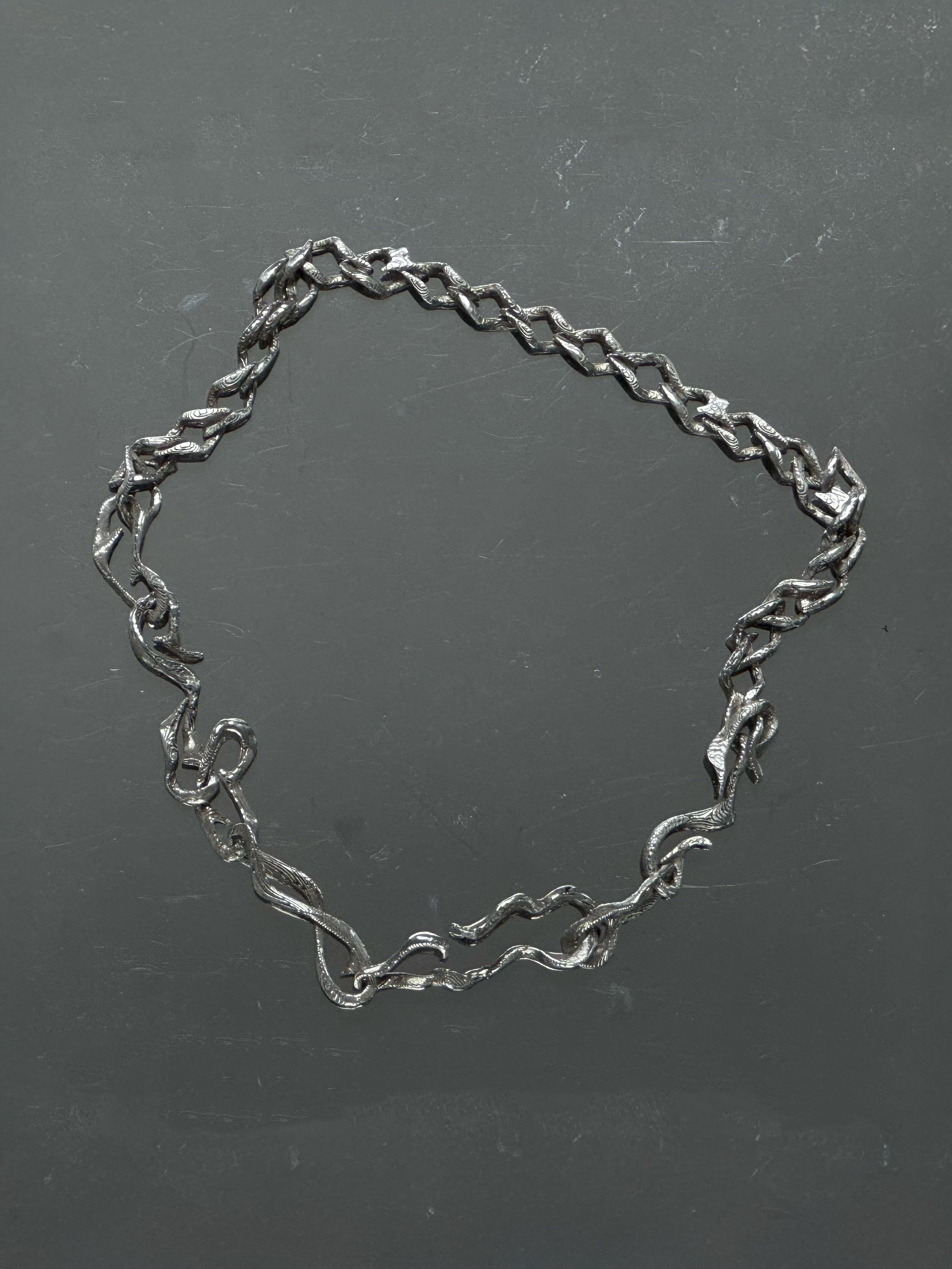 This handcrafted silver chain necklace is a statement piece suitable for layering or wearing on its own. Its versatile design allows for multiple styling options, making it a timeless addition to any artisan silver jewelry collection.