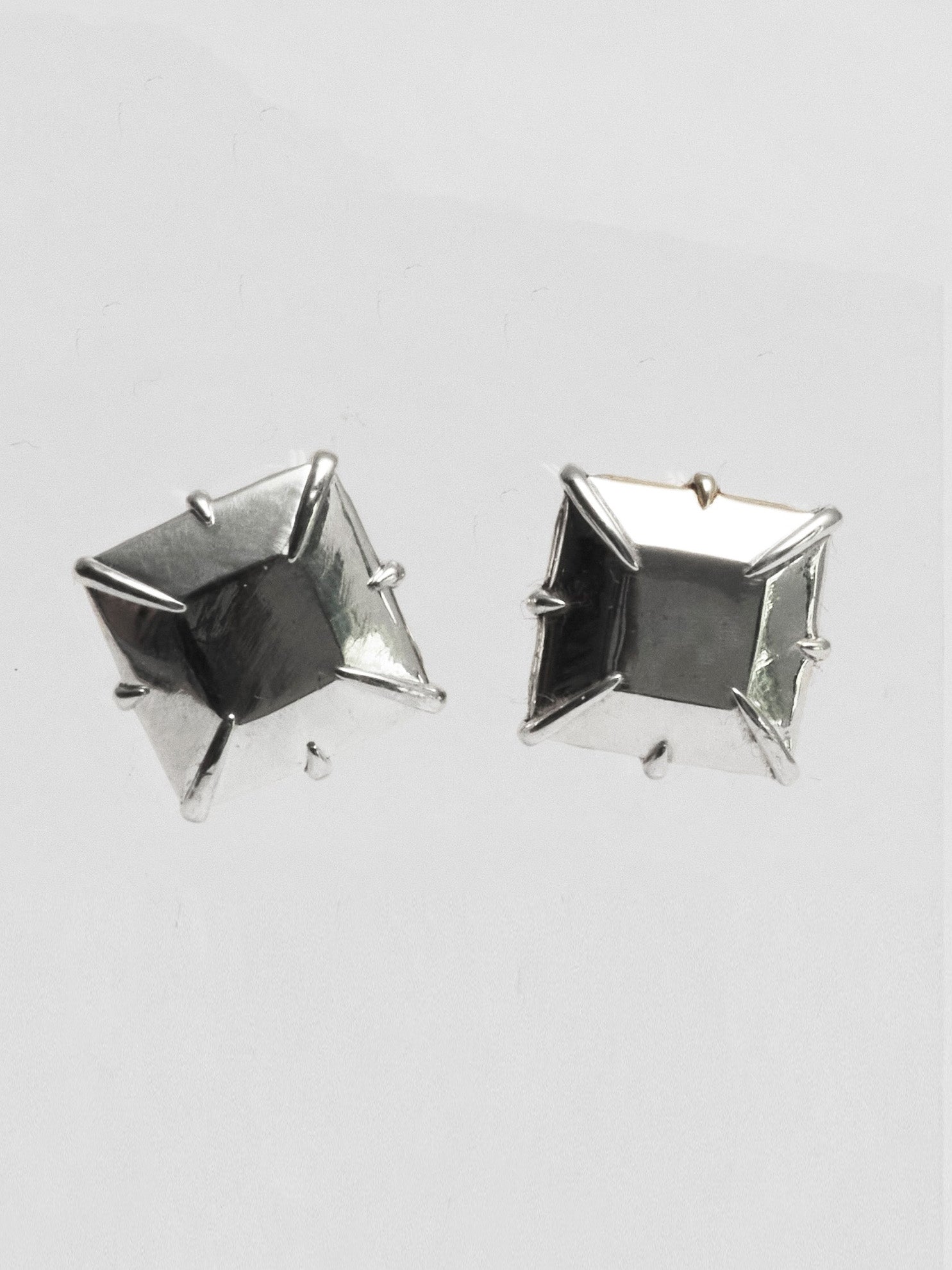 The Large Princess Stud reimagines the bold geometry of a diamond in solid 925 sterling silver. Cast in a princess-cut square form, each single stud earring is individually cast and handset to embody MQT’s refined approach to fine jewellery—transforming silver into something that shines just as bright as a diamond.