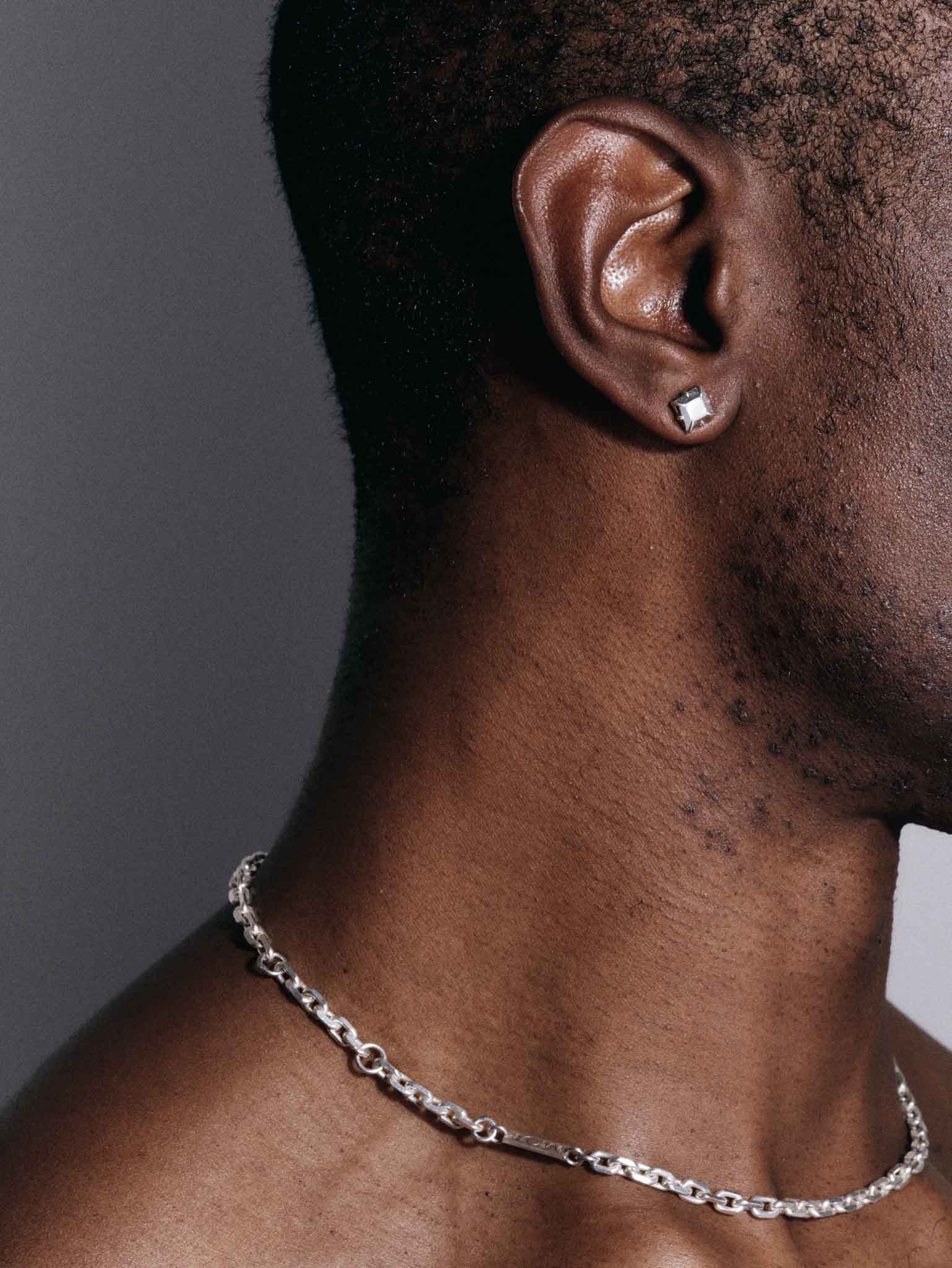 The Small Princess Stud refines MQT’s sculptural interpretation of the diamond. Crafted in solid 925 sterling silver, its square princess-cut stone is individually cast and handset to reveal a subtle, mirrored depth. A quiet statement of precision and modern jewellery design.